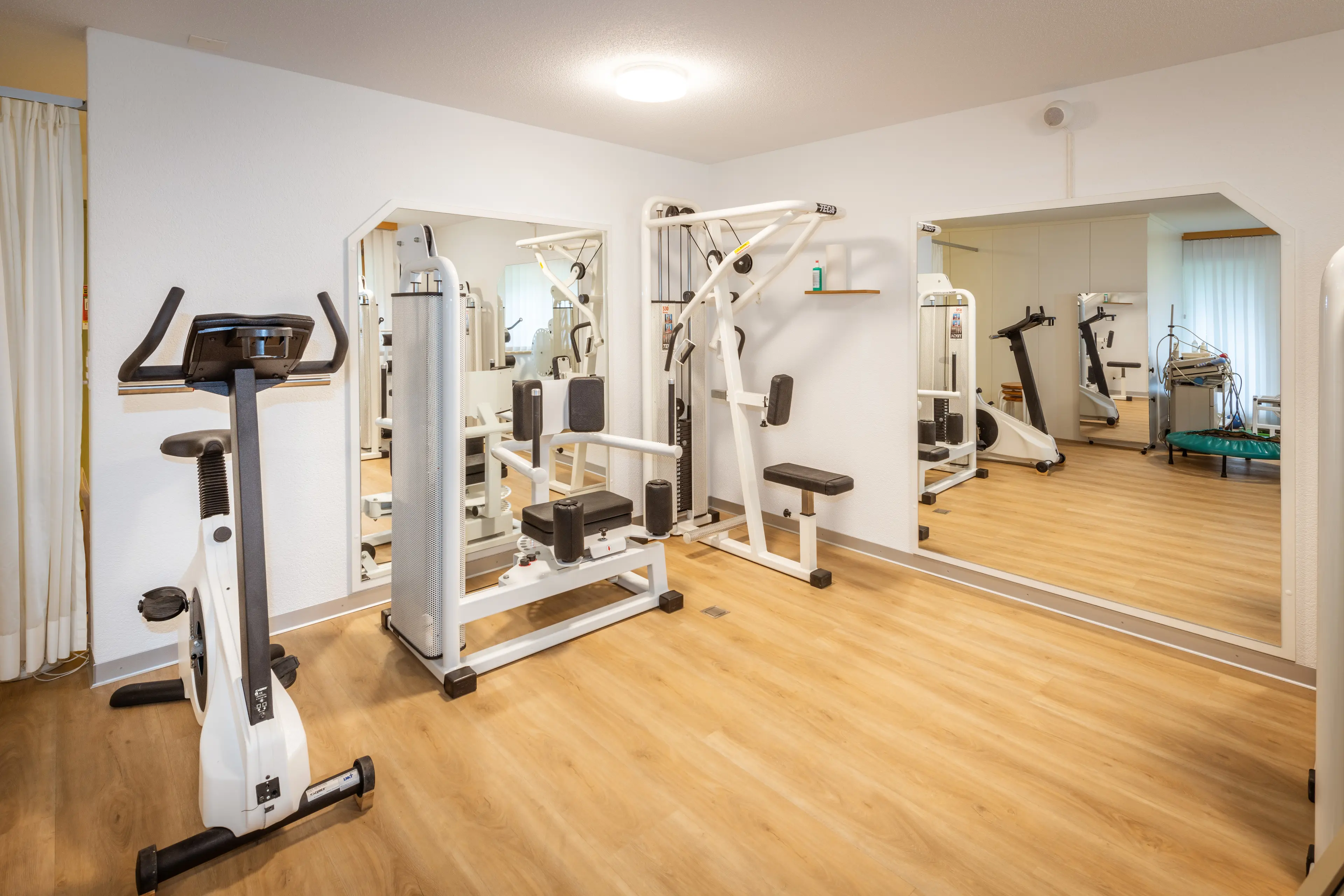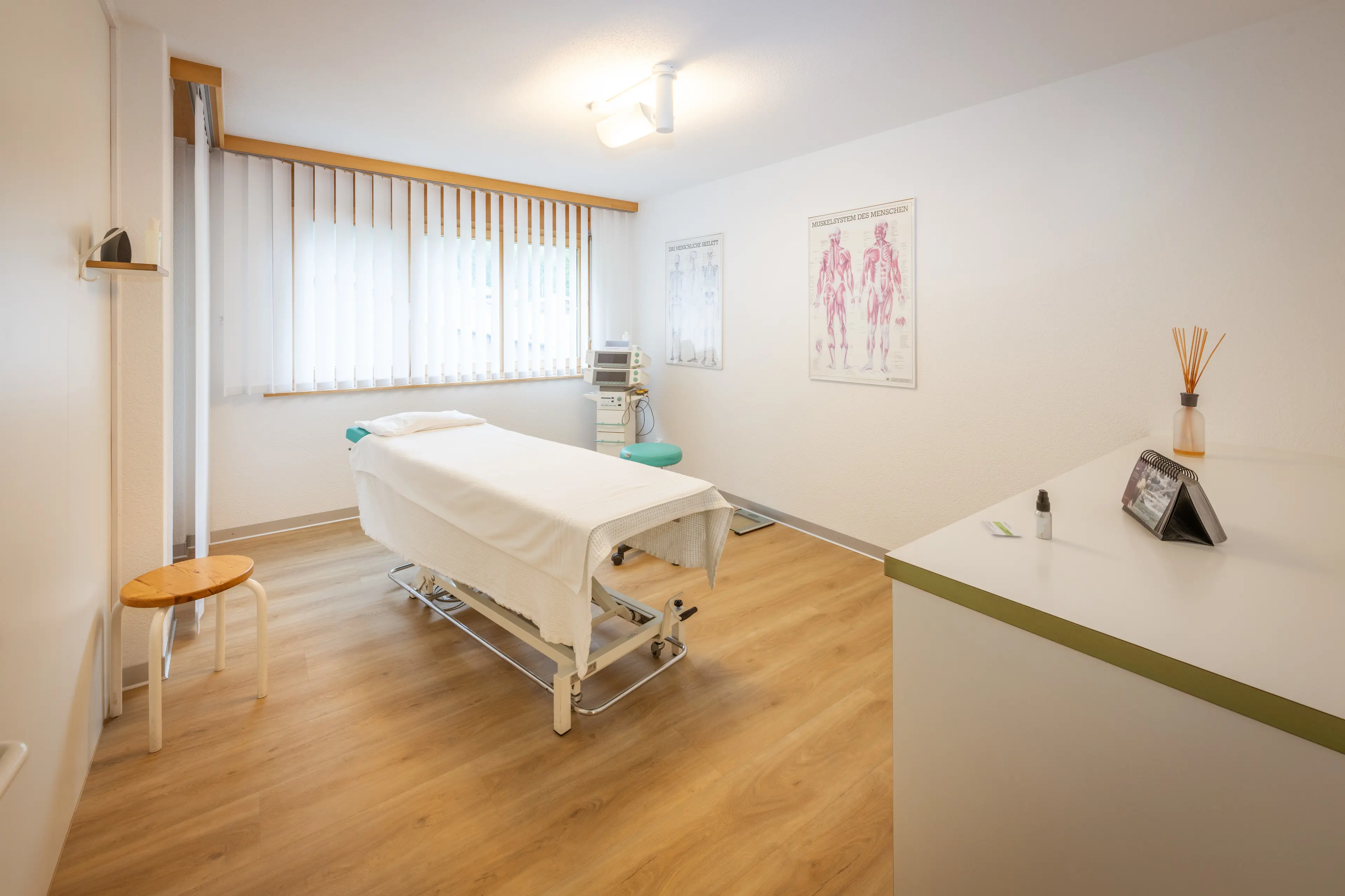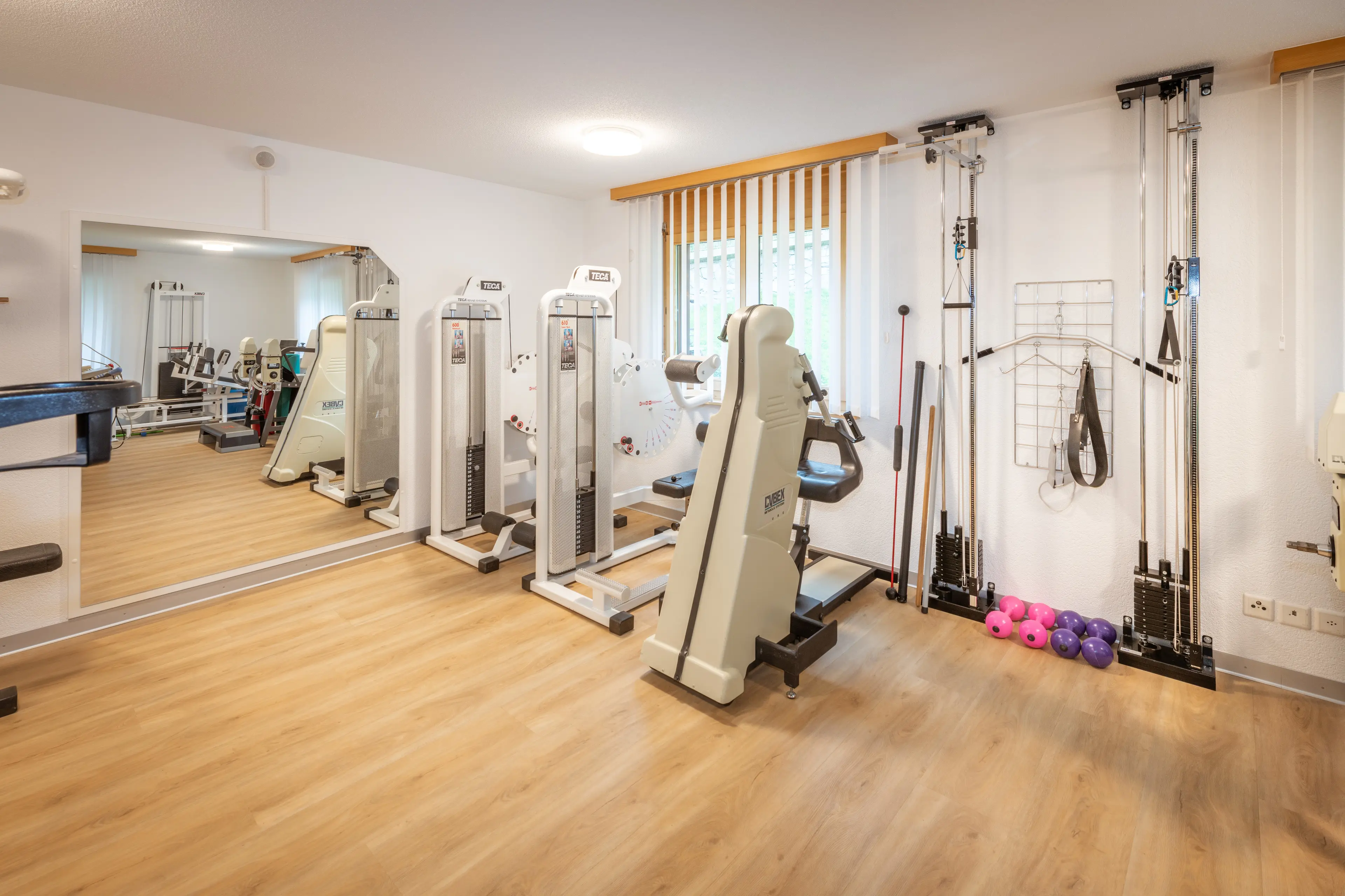 Unser Team, unser Fitnessraum und unsere Behandlungszimmer.