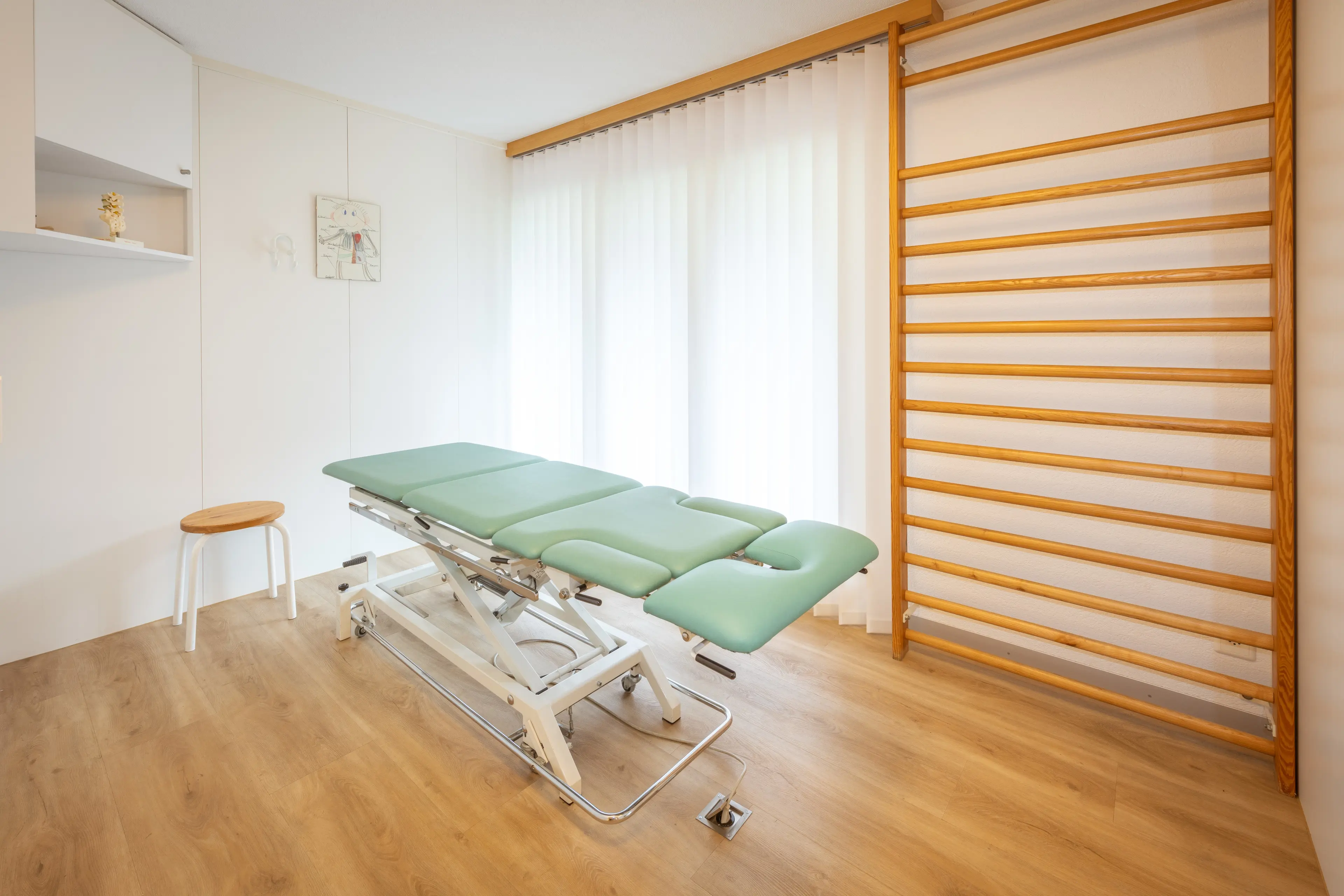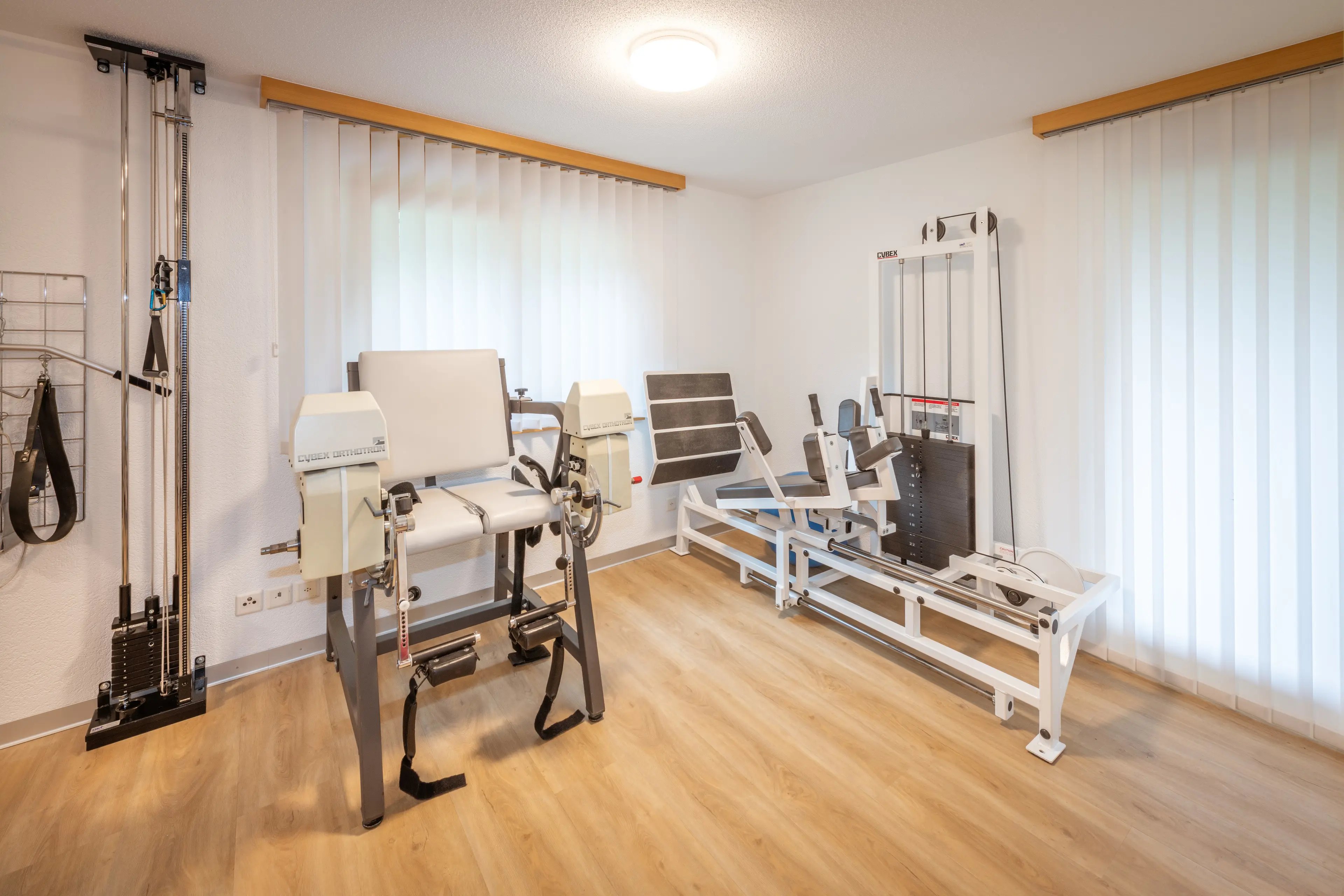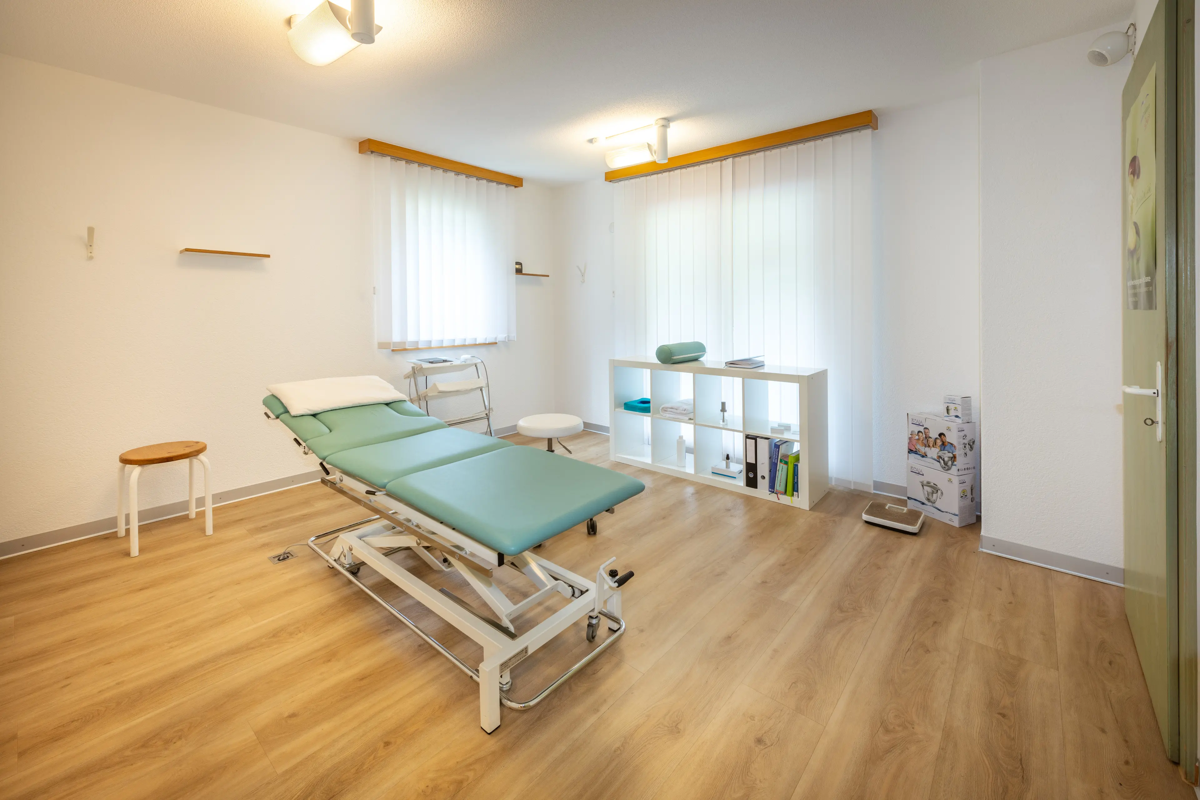 Unser Team, unser Fitnessraum und unsere Behandlungszimmer.